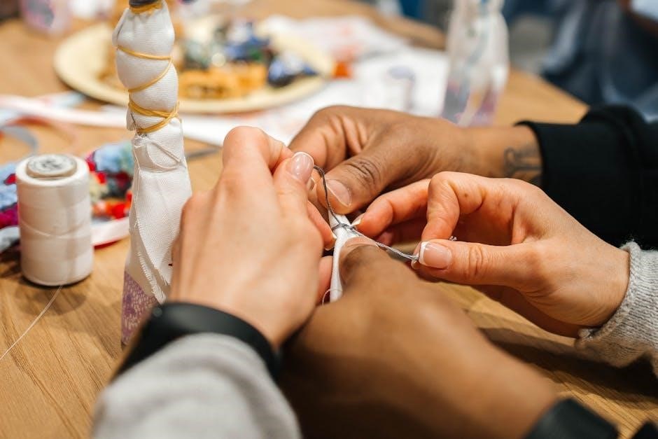 Visual demonstrations within the PDF could illustrate effective untangling methods, ensuring a smoother, more enjoyable crafting process and minimizing frustration for beginners.